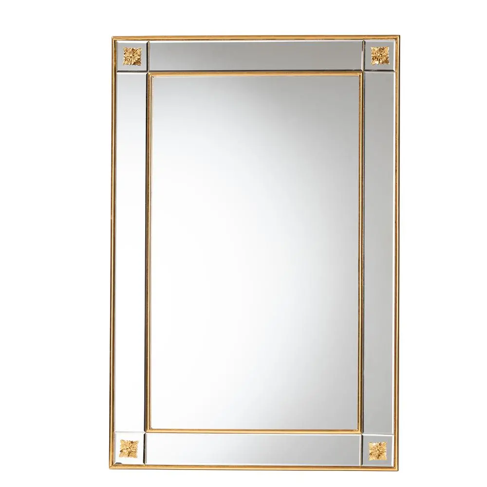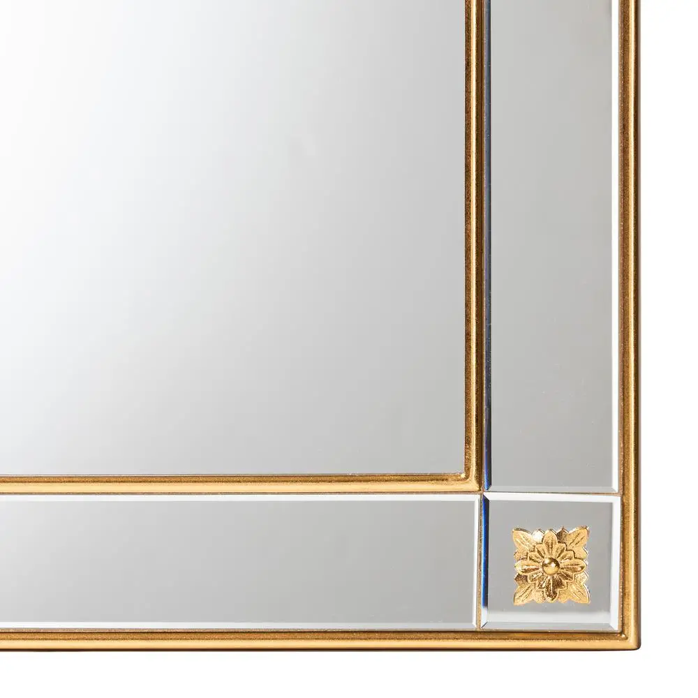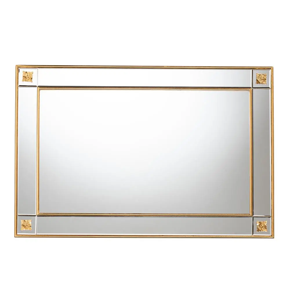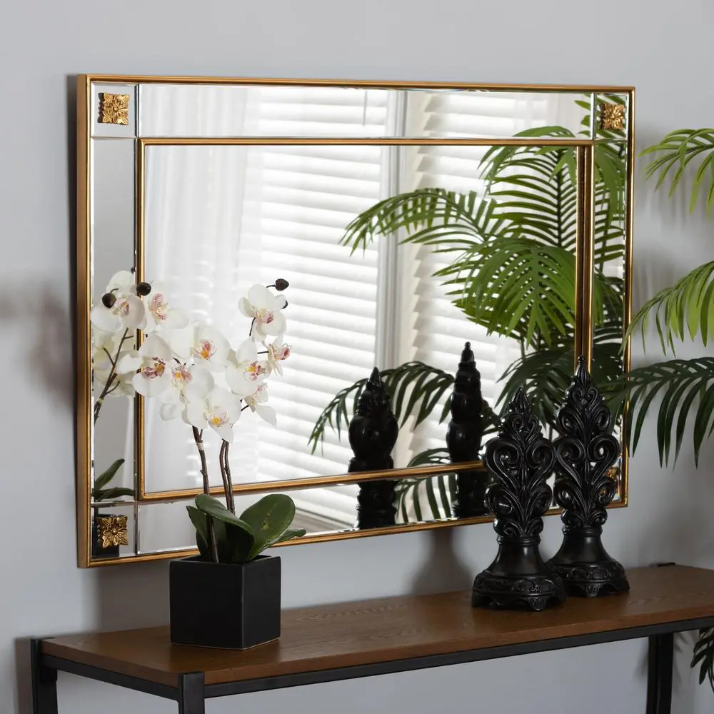 Modern glam and luxe accent wall mirror Constructed with wood frame Floral embellishments Wall mountable Rectangular frame Can be hung both vertically and horizontally
