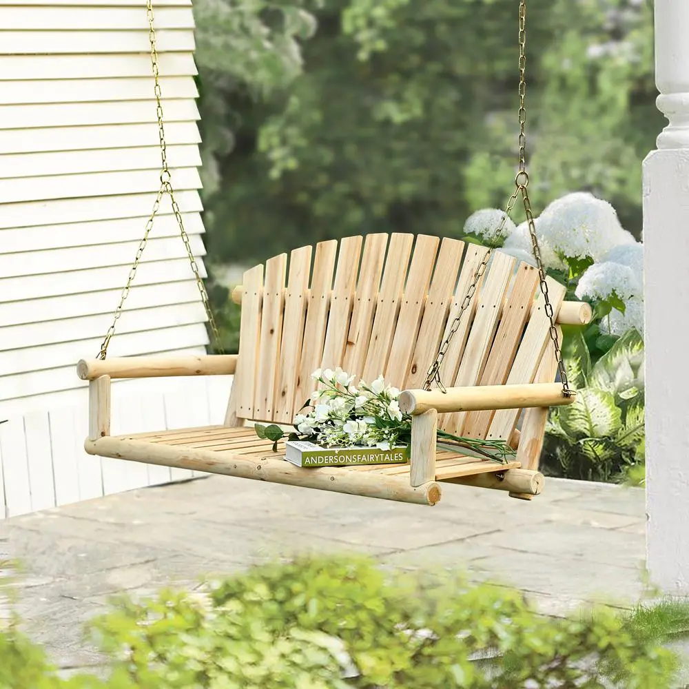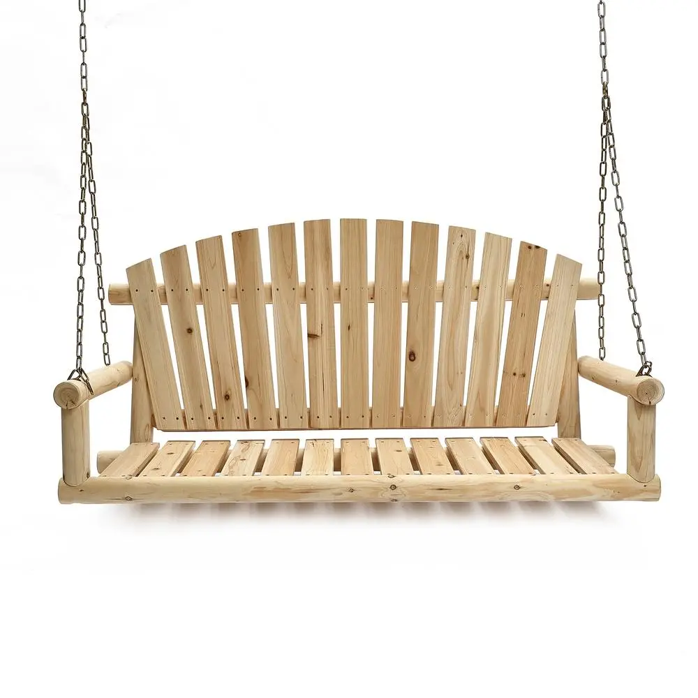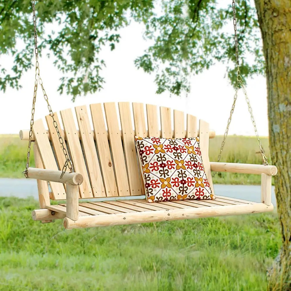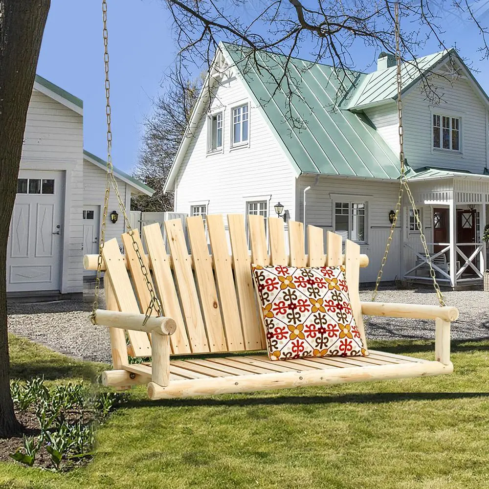 Natural Unfinished Wood Log Cabin Porch Swing with Chains