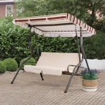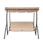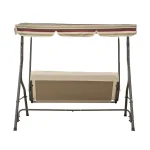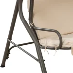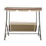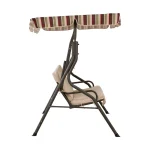 The perfect outdoor spot for a good book and a cool drink. This covered patio swing adds a touch of sweetness to any backyard setting. With a classic tan striped awning the swing provides protection from the suns glare and harmful UV rays. Constructed of a rust-resistant powder-coated steel frame and weather-resistant fabric it is designed to withstand the elements. This swing will be your go-to seat outside.