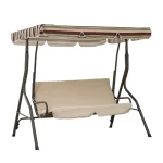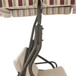 Tan striped weather-resistant fabric supported by a brown rust-resistant powder-coated steel frame68.5″ L x 44.49″ W x 60.43″ H product Weight: 42.77 lbs. Tilt canopy Some assembly required