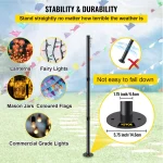 VEVOR String Light Pole, 9.6ft Light String Pole, 1.75in Patio Light Pole, Powder Coated Steel String Light Pole Stand for Outdoor, Metal String Poles with A Clamp Used for Yard, Patio, Wedding, Party