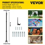 Base Diameter: 5.75 inch/ 14.6 cm,Color: Black,Model: DGZJKGX9.6FT,Buckle Material: Stainless Steel,Material: Powder-Coated Steel,Height: 9.6 ft/ 3 m,Pole Diameter: 1.75 inch/ 4.4 cm